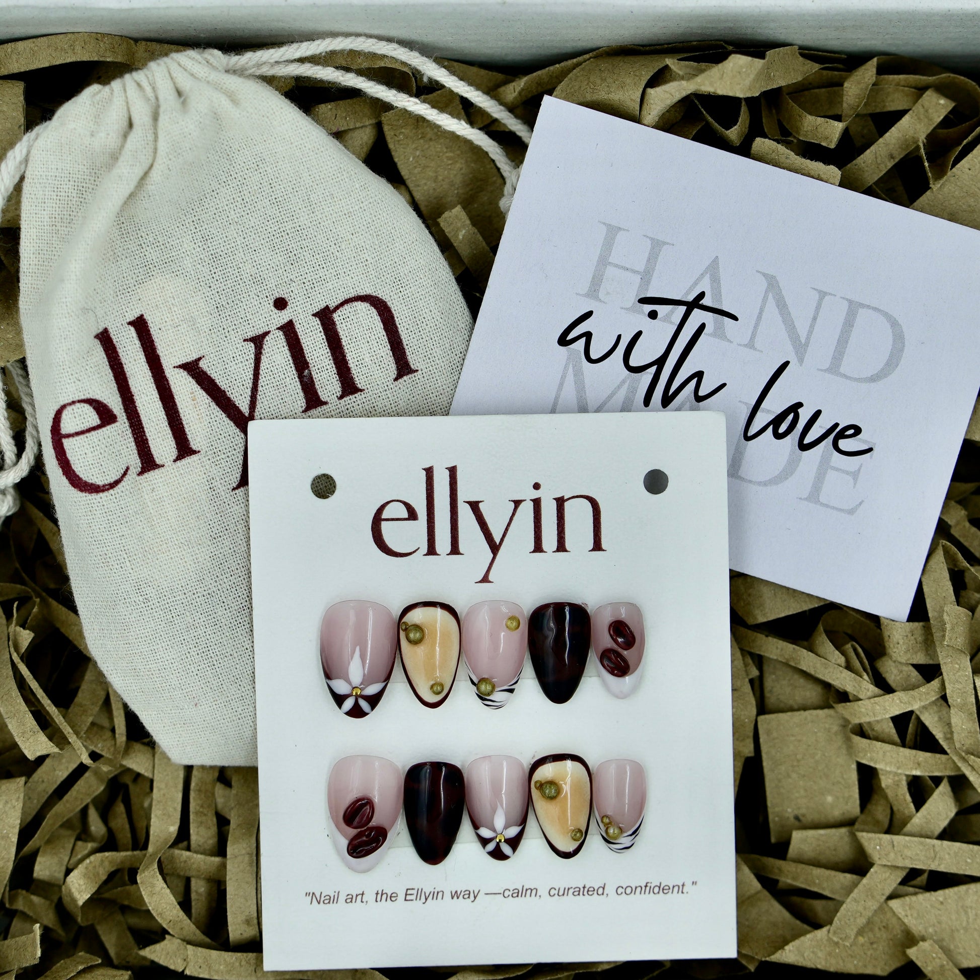 Every Ellyin press-on set is handcrafted by artists — with warmth, care, and detail in every design.