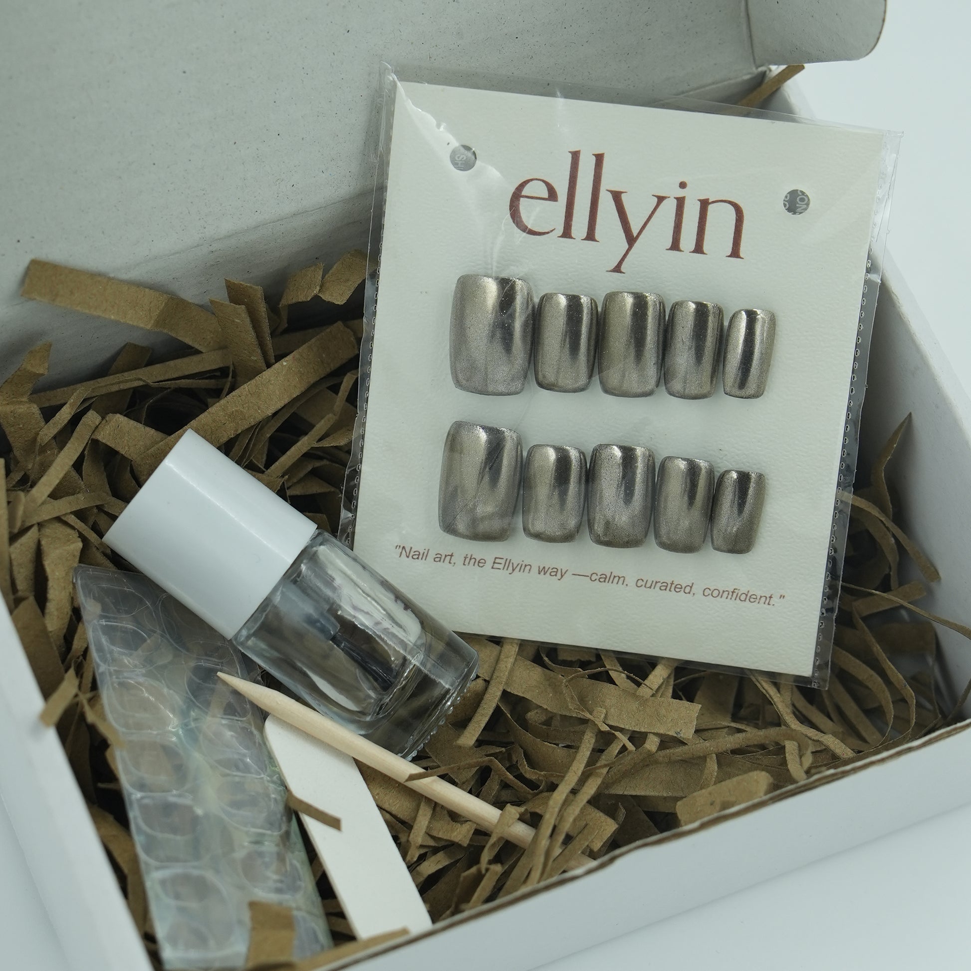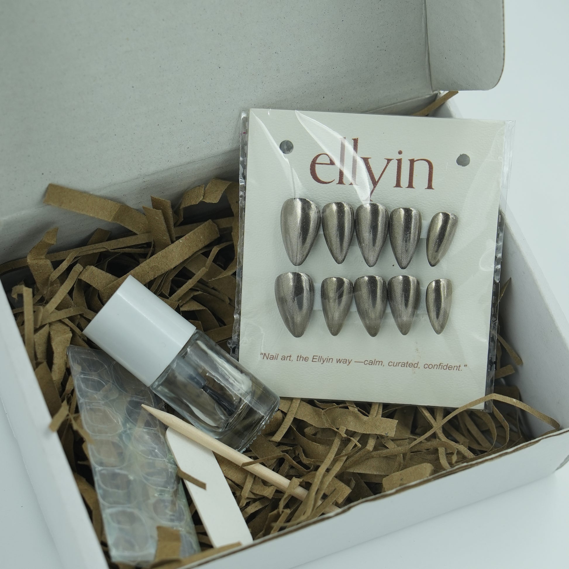 Each Ellyin box includes a complete set of press-on nails, nail glue/adhesive tab, a cuticle stick, mini buffer — all packed with care to make your DIY nail experience smooth and satisfying.