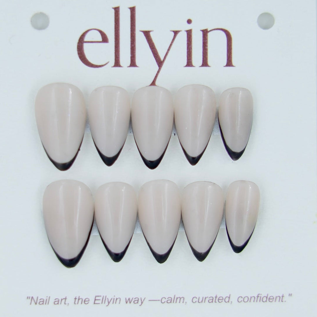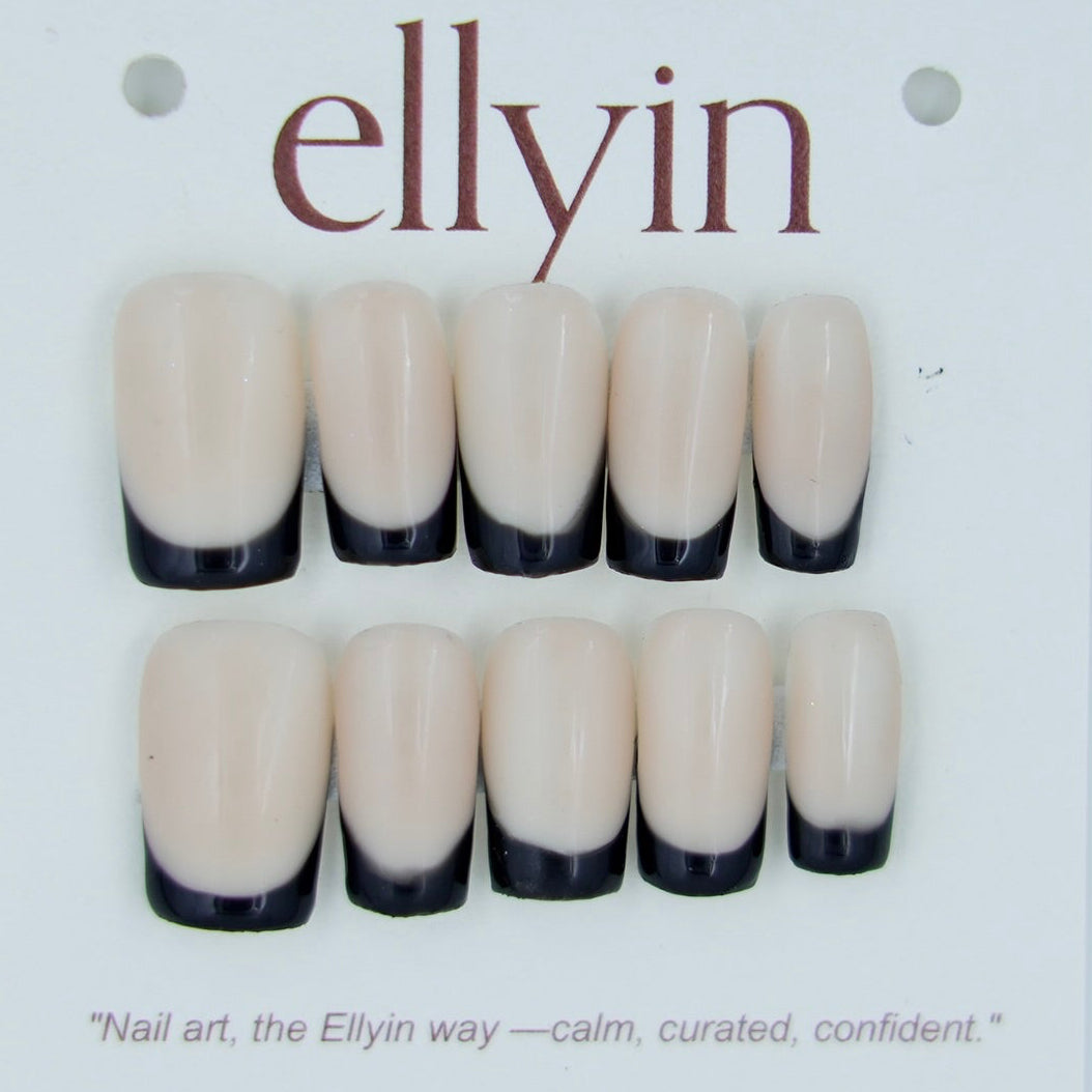 Bold. Grounded. Unapologetic. Ellyin’s Black French Tip set reimagines timeless sophistication for those who own every room they walk into. Whether almond or square, these press-ons bring a sharp, editorial edge to your everyday.