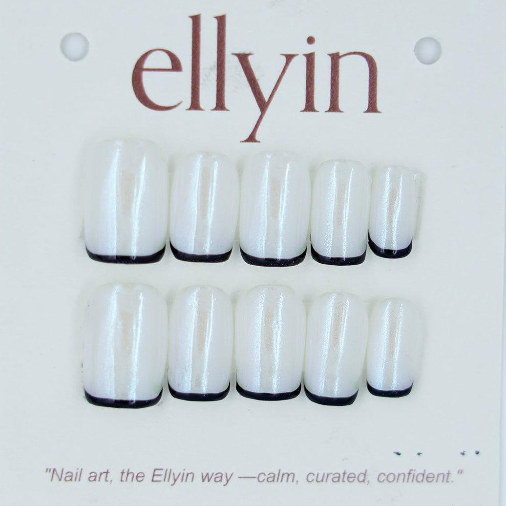 Modern. Moody. Magnetic. Ellyin’s Black Chrome French Press-On Nails combine a glowing pearl chrome base with bold black tips for a look that commands attention.