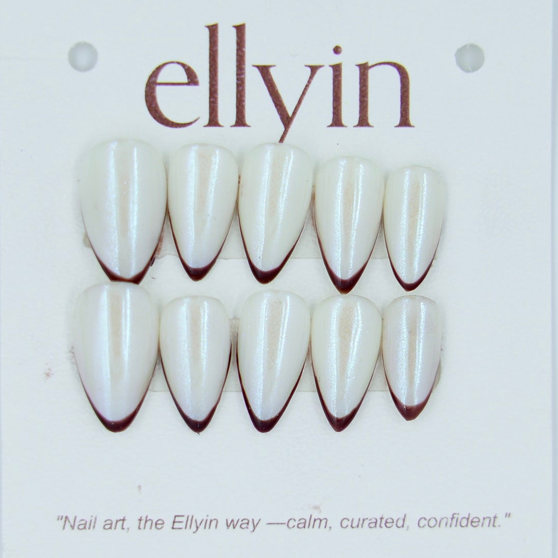 Ellyin’s Brown Chrome French Press-On Nails Grounded yet glossy — Ellyin’s Brown Chrome French Press-On Nails feature a pearl chrome base and rich chocolatey tips. A warm, earthy take on a futuristic finish.