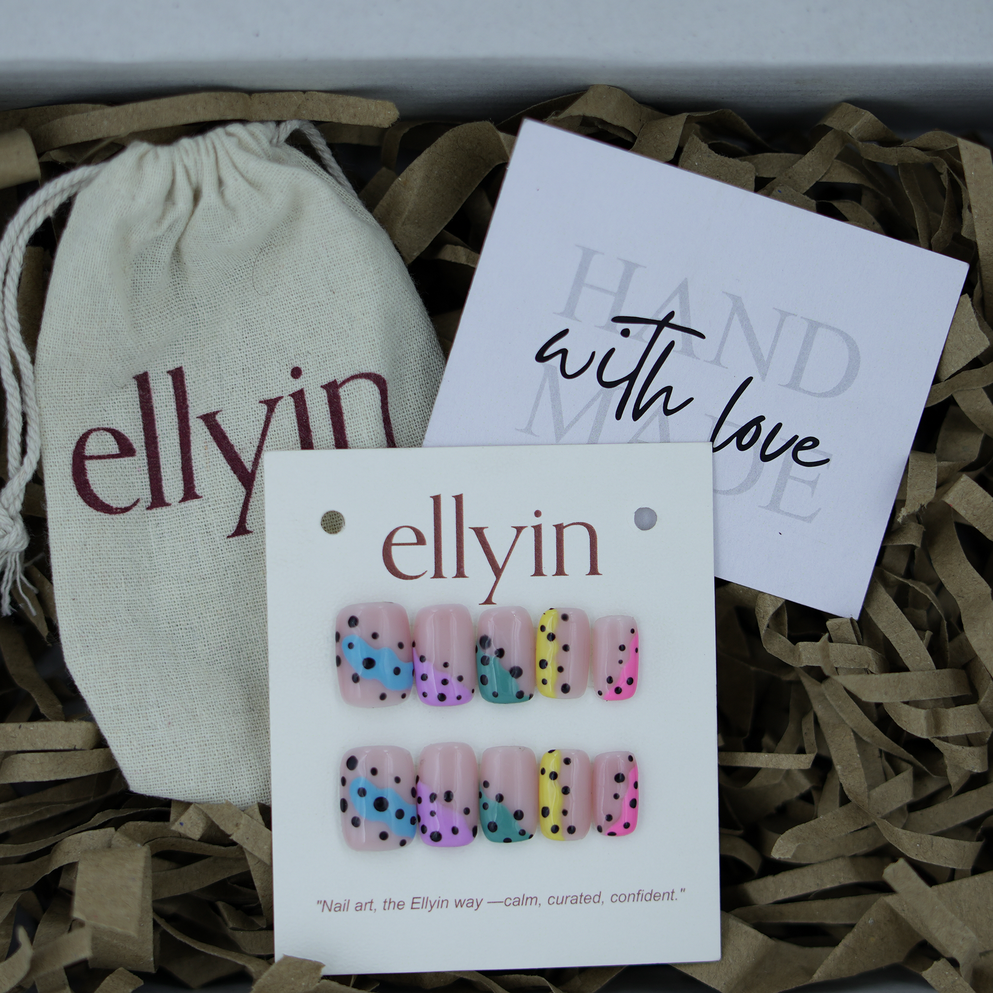 Every Ellyin press-on set is handcrafted by artists — with warmth, care, and detail in every design.