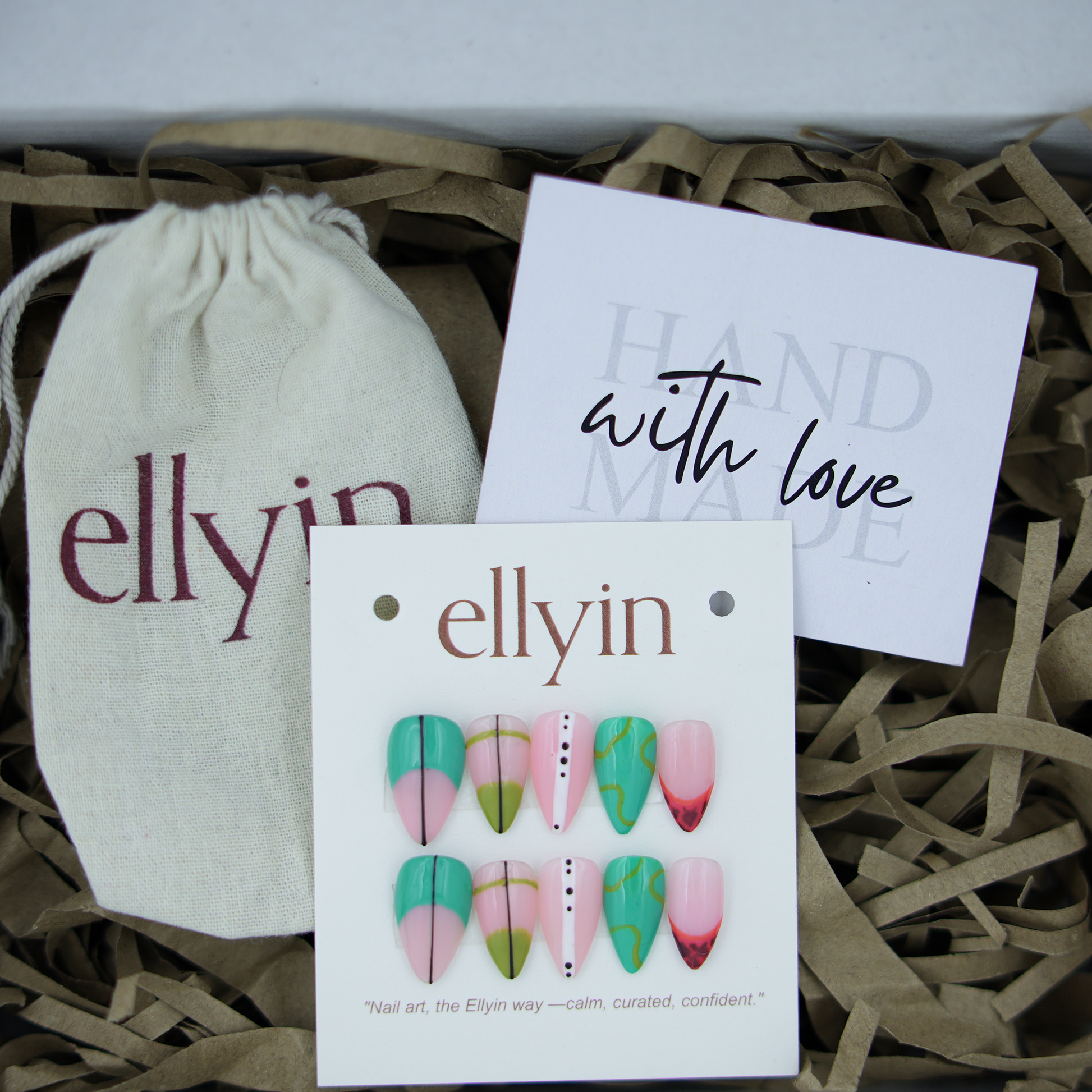 Every Ellyin press-on set is handcrafted by artists — with warmth, care, and detail in every design.