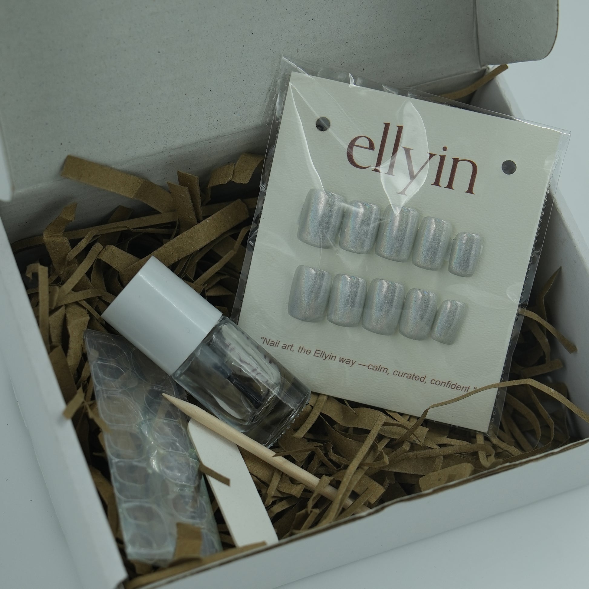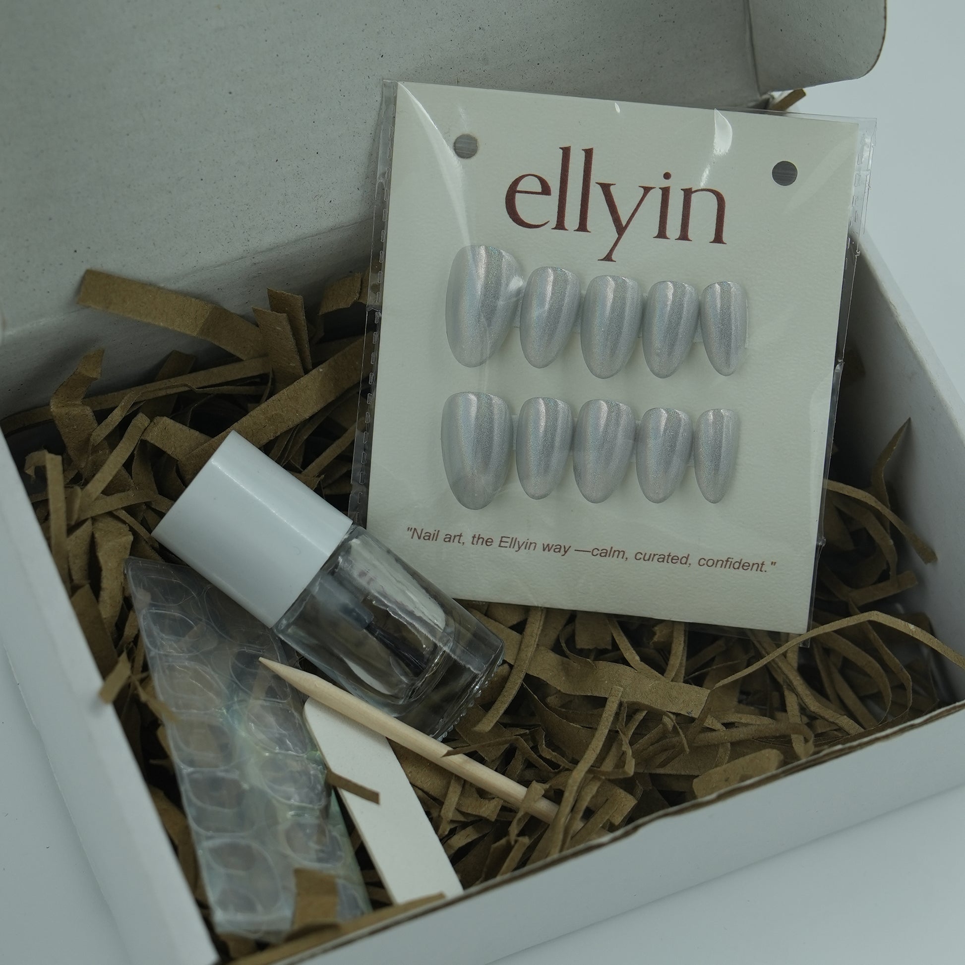 Each Ellyin box includes a complete set of press-on nails, nail glue/adhesive tab, a cuticle stick, mini buffer — all packed with care to make your DIY nail experience smooth and satisfying.