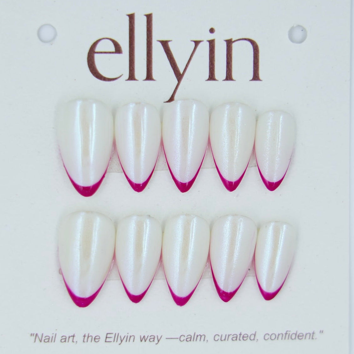 Meet Ellyin’s Magenta Chrome French Press-On Nails — where futuristic shimmer meets playful color. Featuring a high-shine pearly chrome base paired with sharp magenta tips, this design balances boldness and sophistication with ease. Whether you're reaching for almond or square, this set makes a statement — without saying a word.