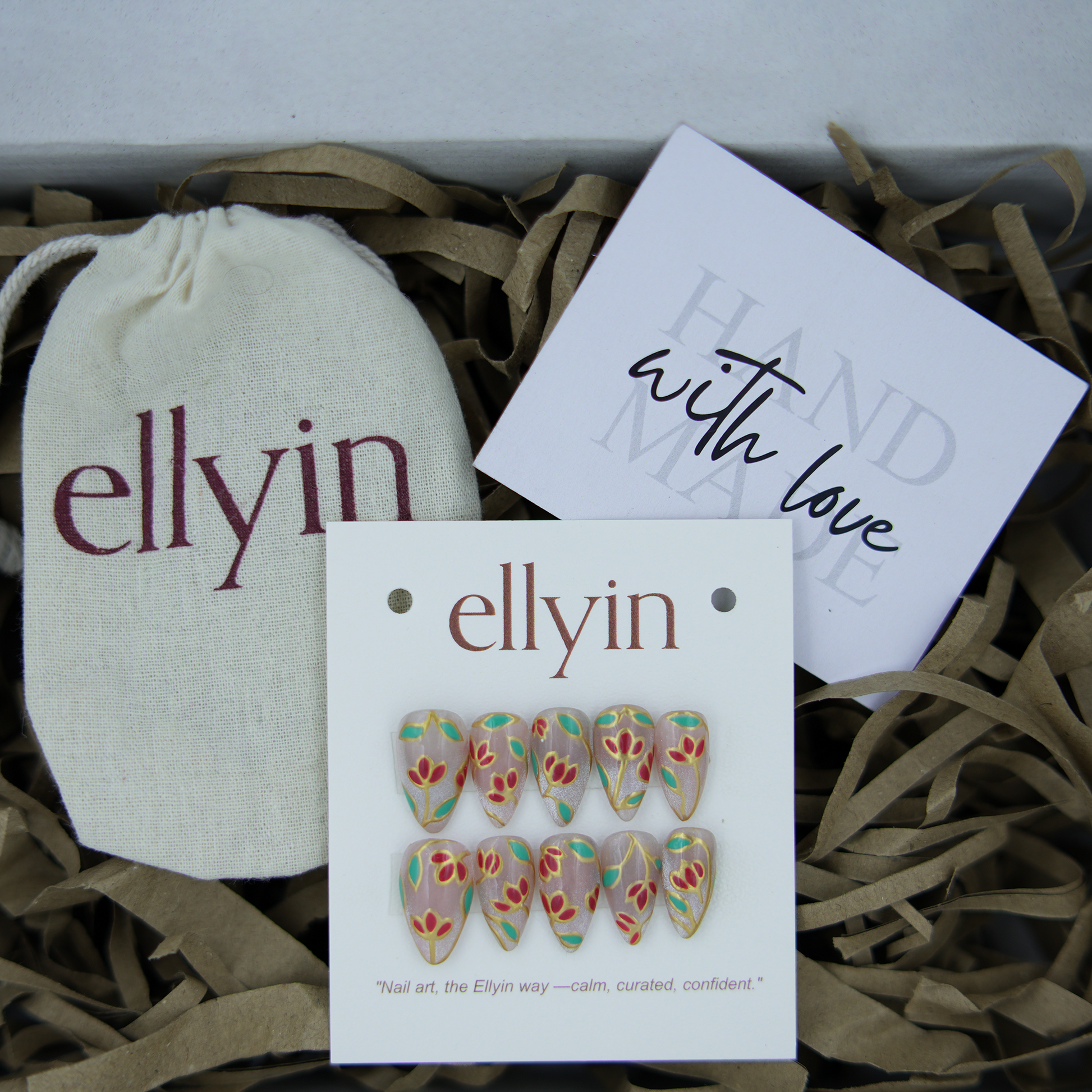 Every Ellyin press-on set is handcrafted by artists — with warmth, care, and detail in every design.