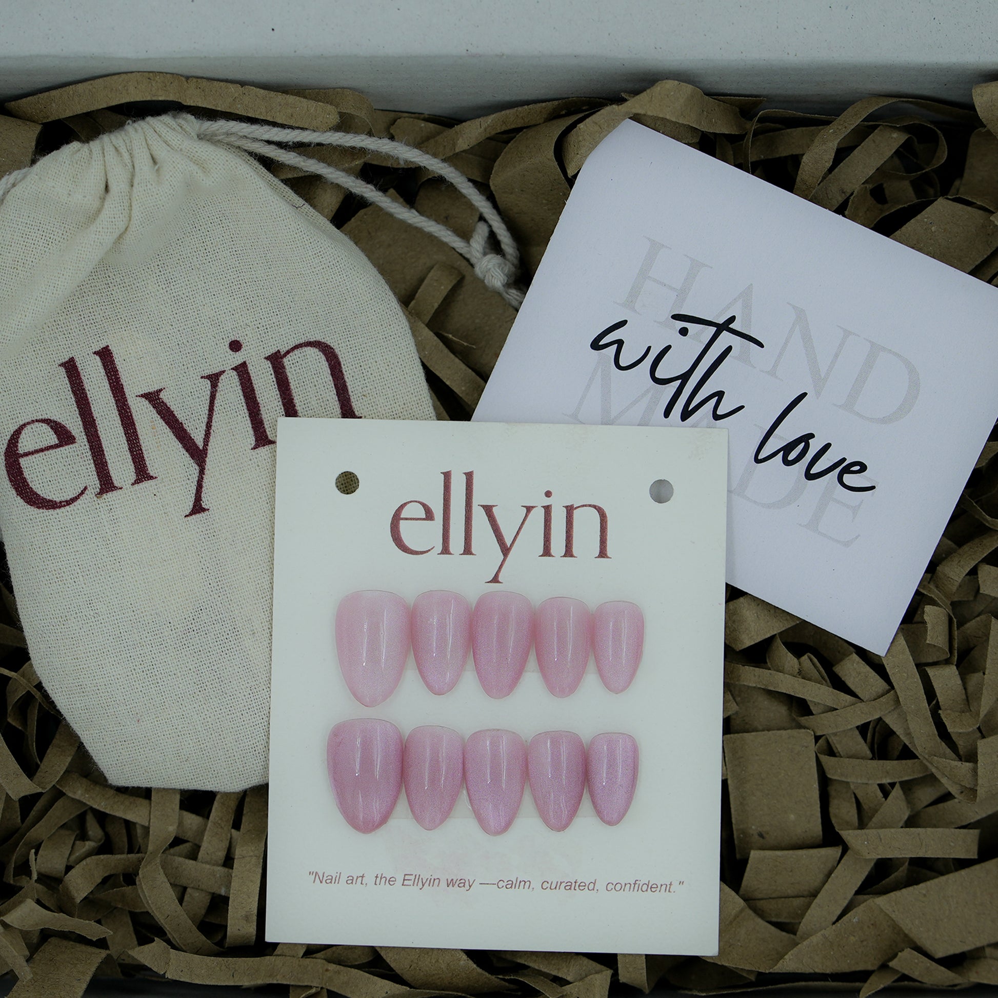 Every Ellyin press-on set is handcrafted by artists — with warmth, care, and detail in every design.