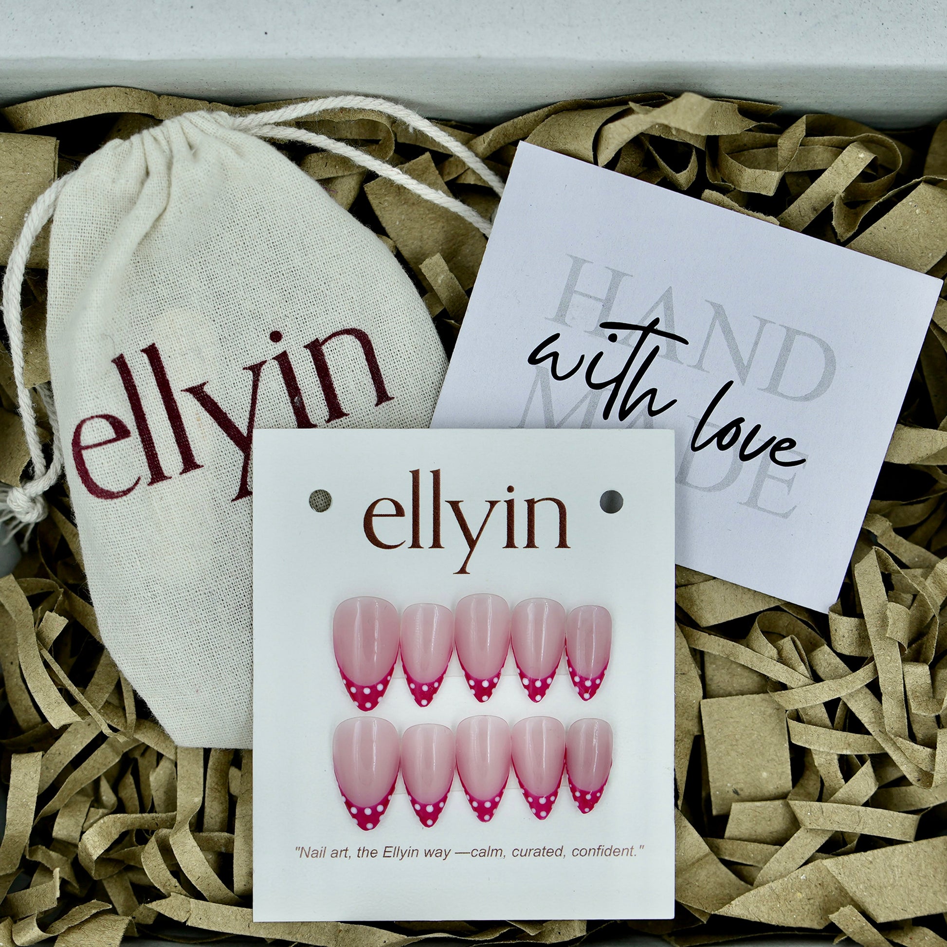 Every Ellyin press-on set is handcrafted by artists — with warmth, care, and detail in every design.