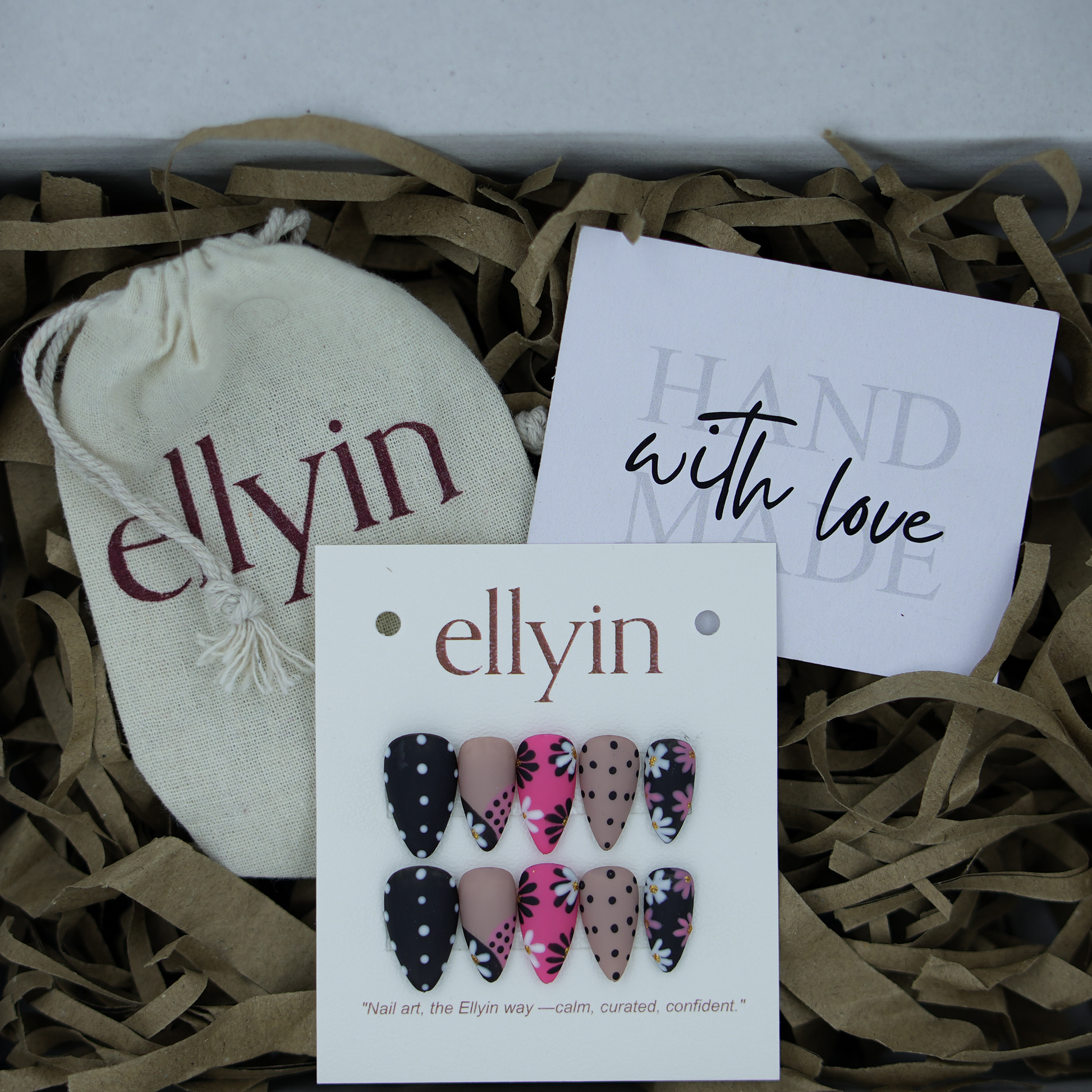 Every Ellyin press-on set is handcrafted by artists — with warmth, care, and detail in every design.